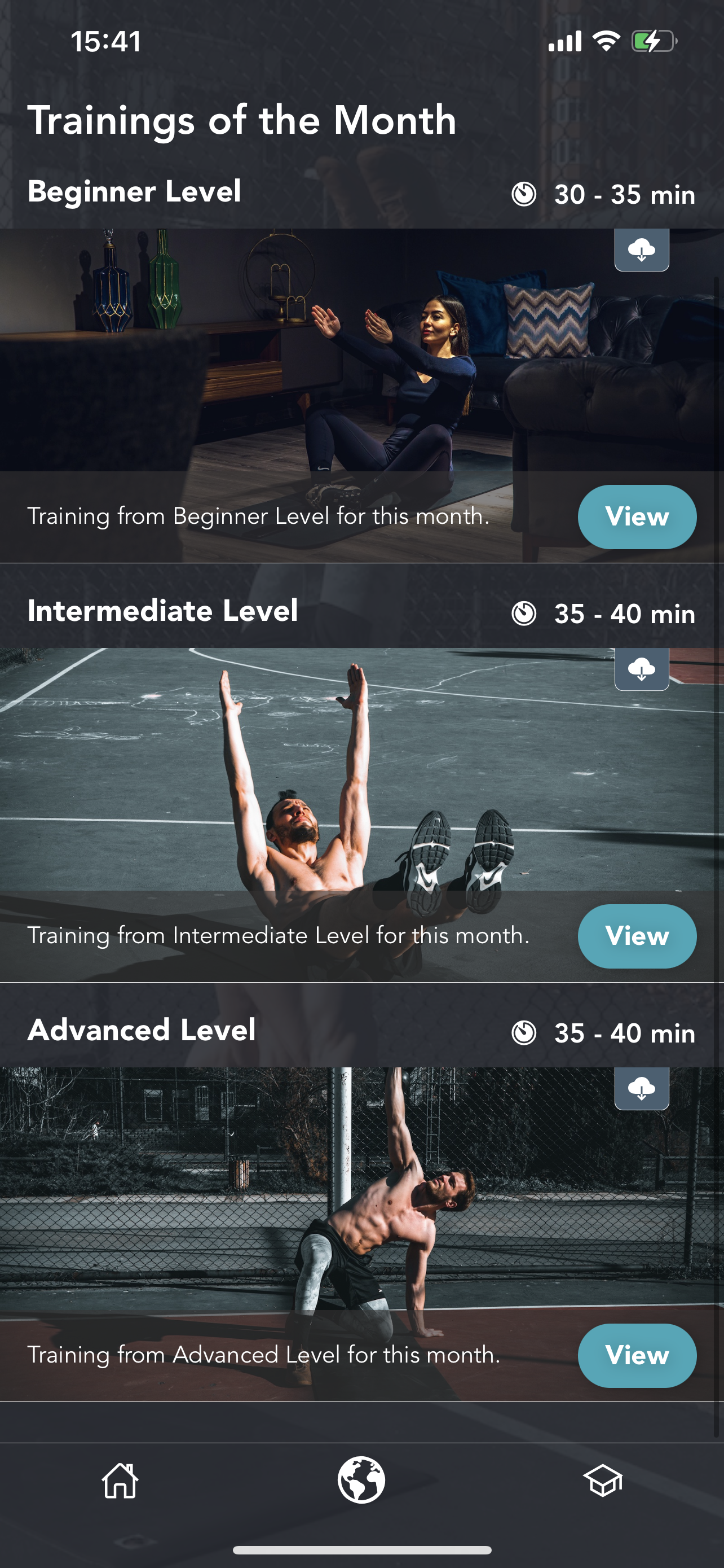 Beginner and Intermediate levels consist of three programs and each program is made up of 16 trainings that take a month to complete. Advanced level consists of multiple programs that continue to be provided with new and fresh trainings all the time. Advanced level trainings require a kettlebell or a dumbbell.