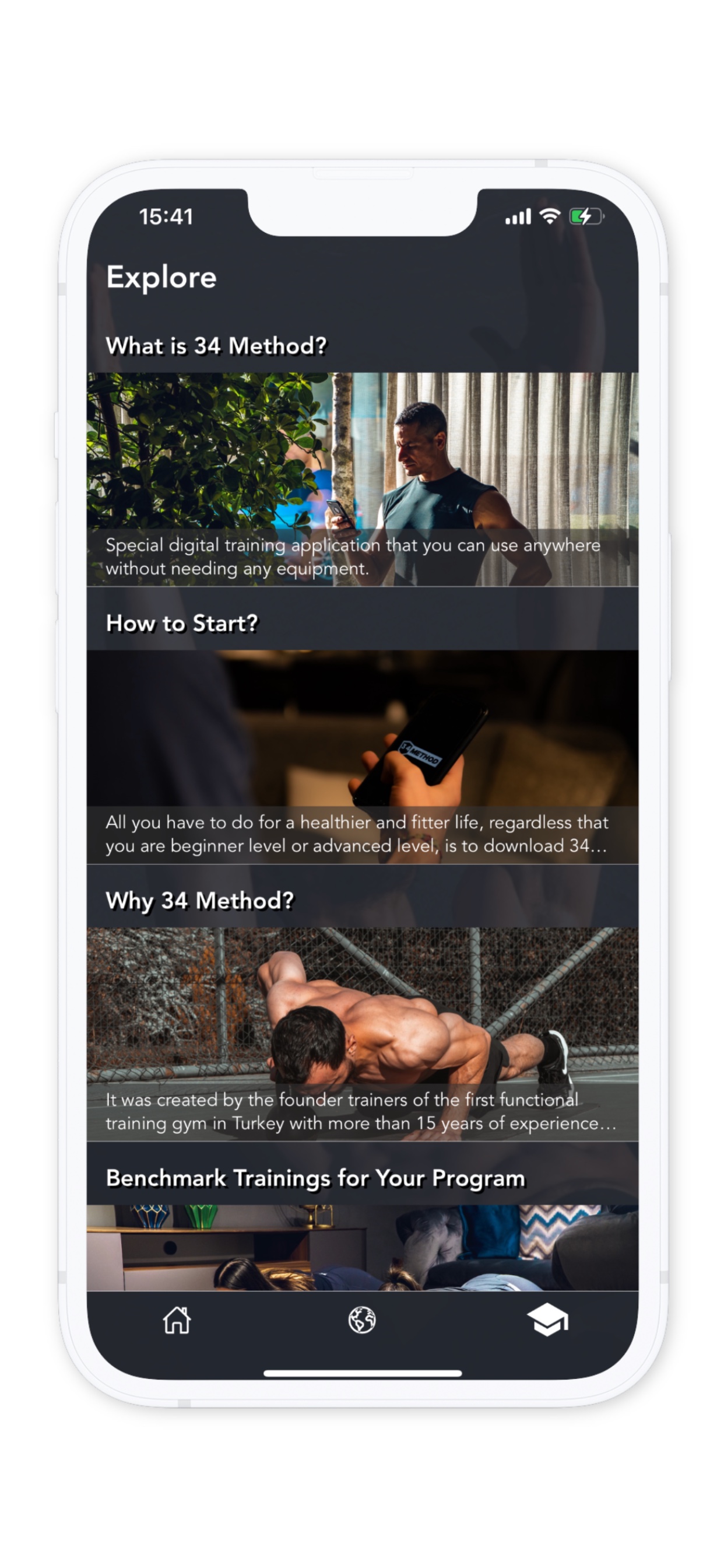 Your special digital training application that you can use anywhere without needing any equipment.. You can access 34 Method content wherever you go on your application and experience real fitness trainings.